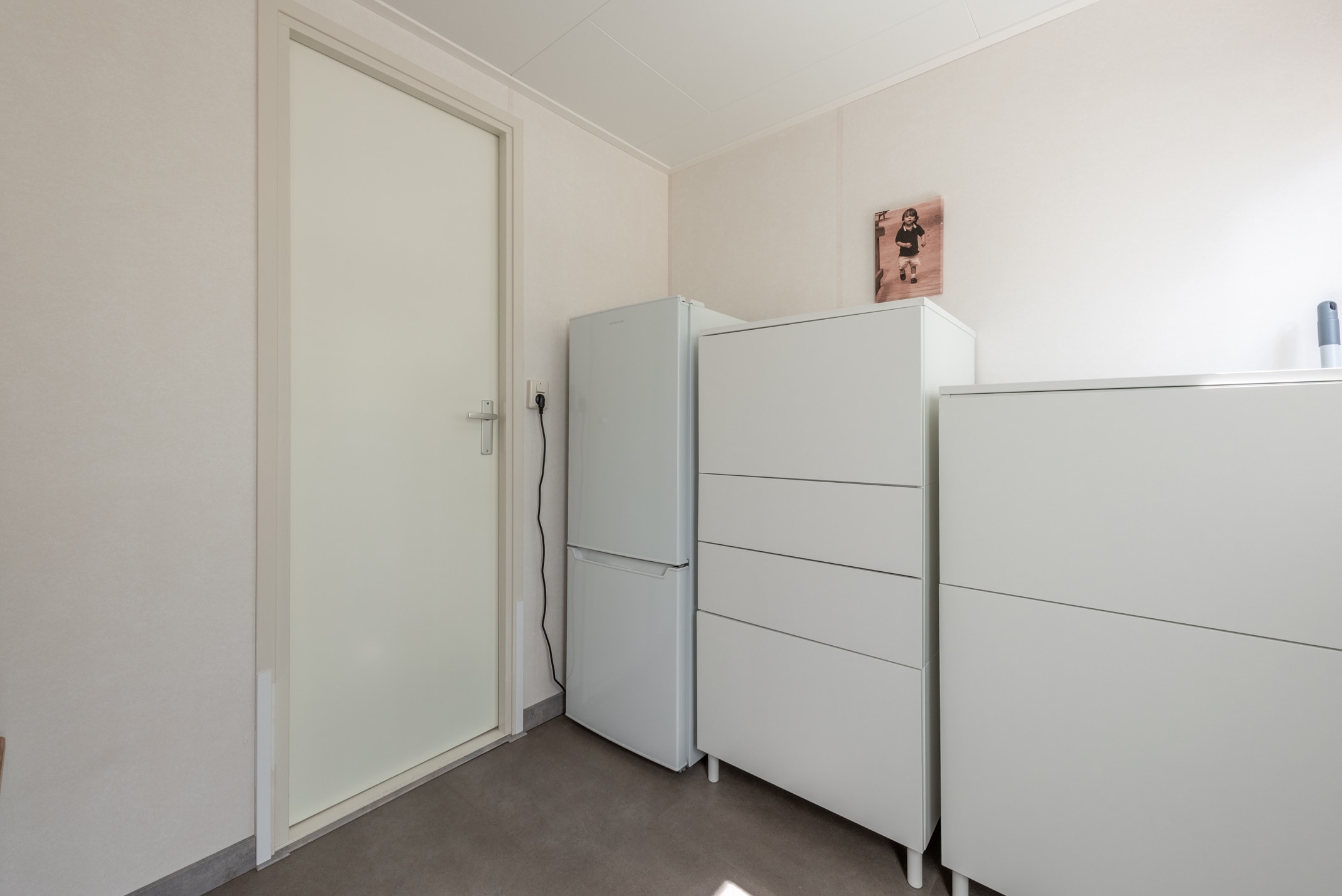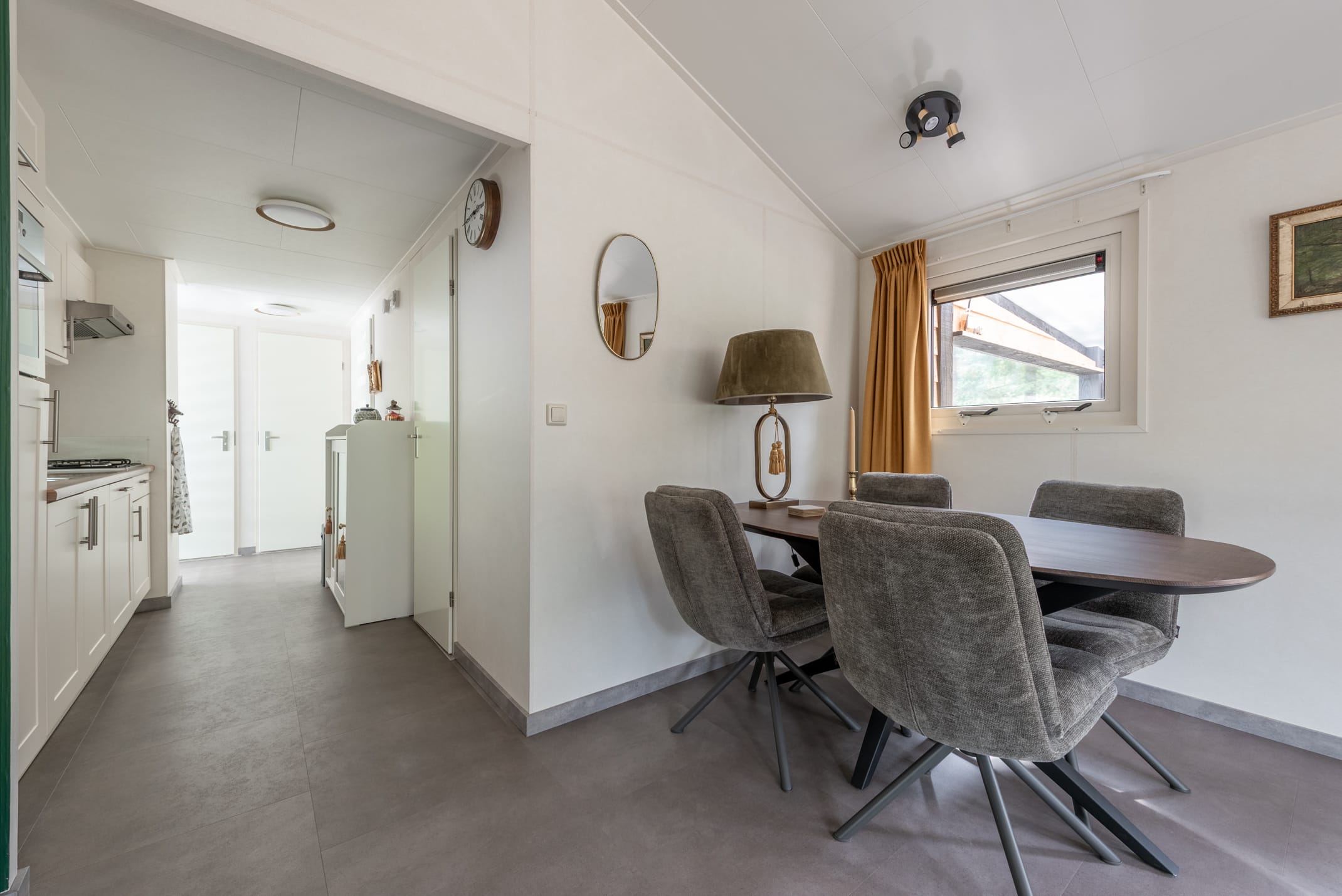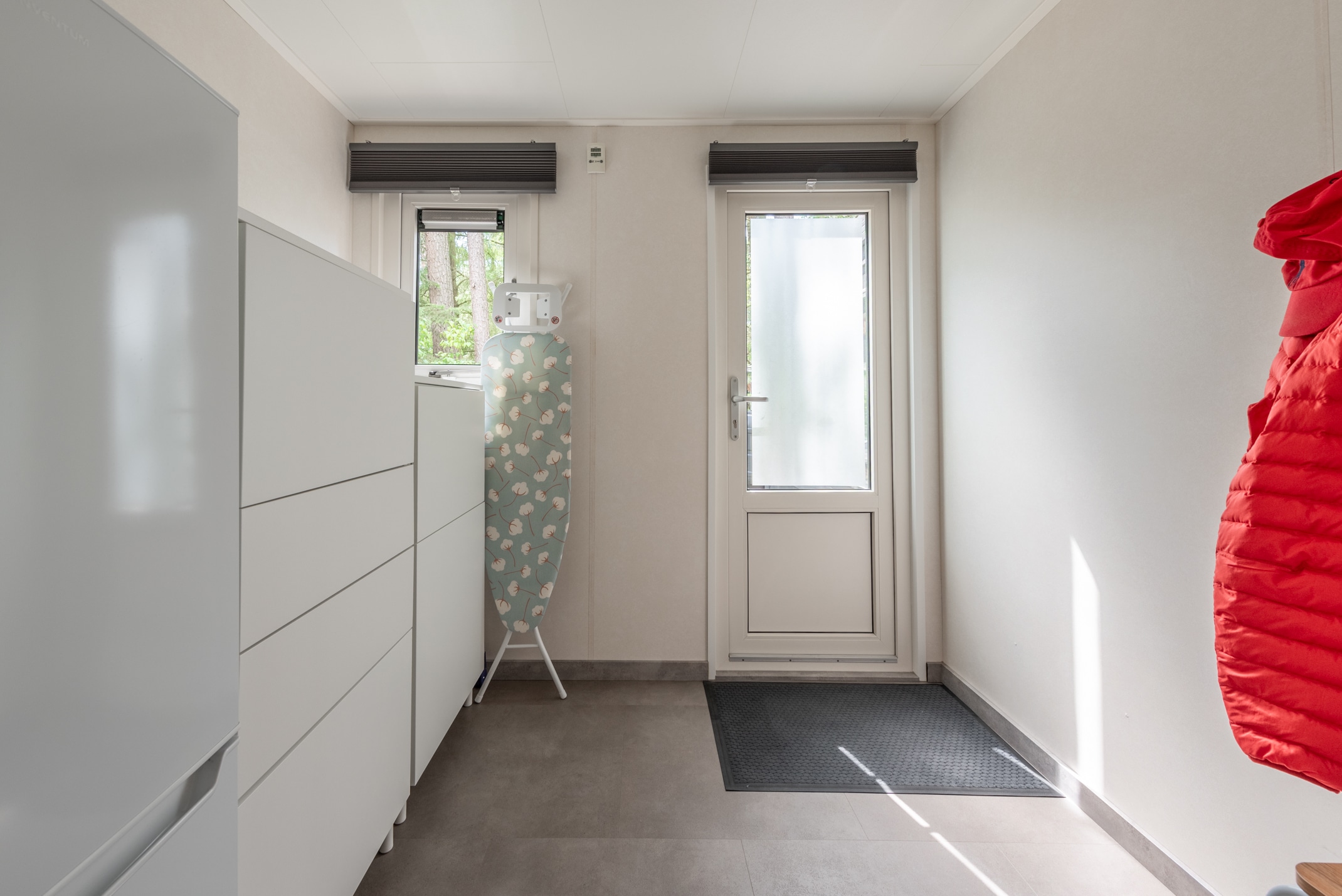 Verder is deze recreatiewoning in 2025 voorzien van een prachtige PVC vloer met ondervloer die voor extra isolatie zorgt. Ook is het binnen verfwerk vernieuwd. De ingang is verplaatst zodat de hal ruimer is. Hiervoor is de tweede slaapkamer opgeofferd maar dit is makkelijk terug te draaien. Op dit moment is de ruimte in gebruik als bijkeuken. Ook deze verbouwing is in 2025 gedaan.