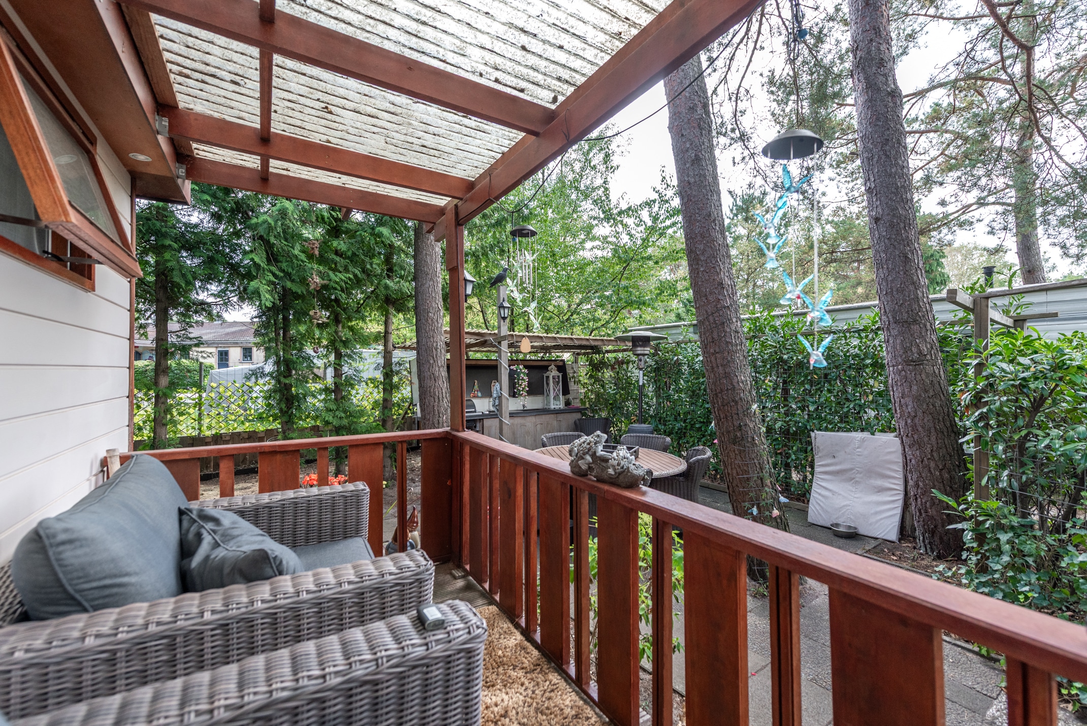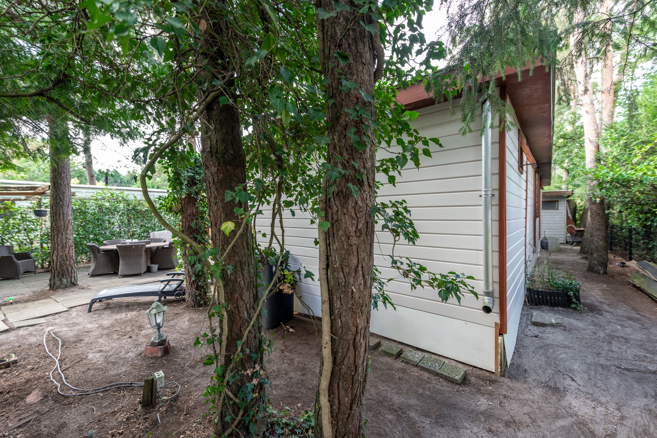 Het chalet heeft diverse terrassen zodat er in de gehele tuin zowel heerlijk in de zon als wel in de schaduw kan worden gezeten.