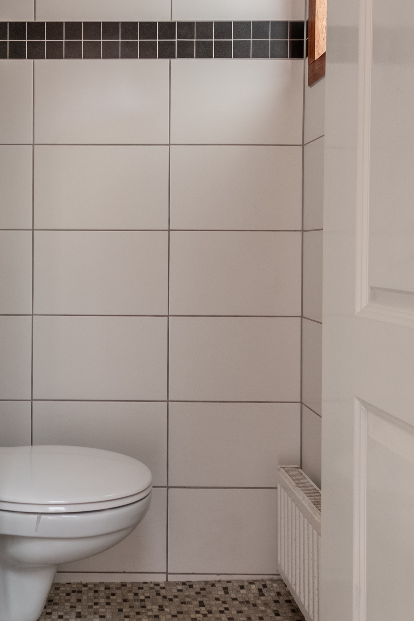 Bij binnenkomst vinden we rechts een separaat hangend toilet en een bergkast waarin de CV ketel (2025) is geplaatst.
