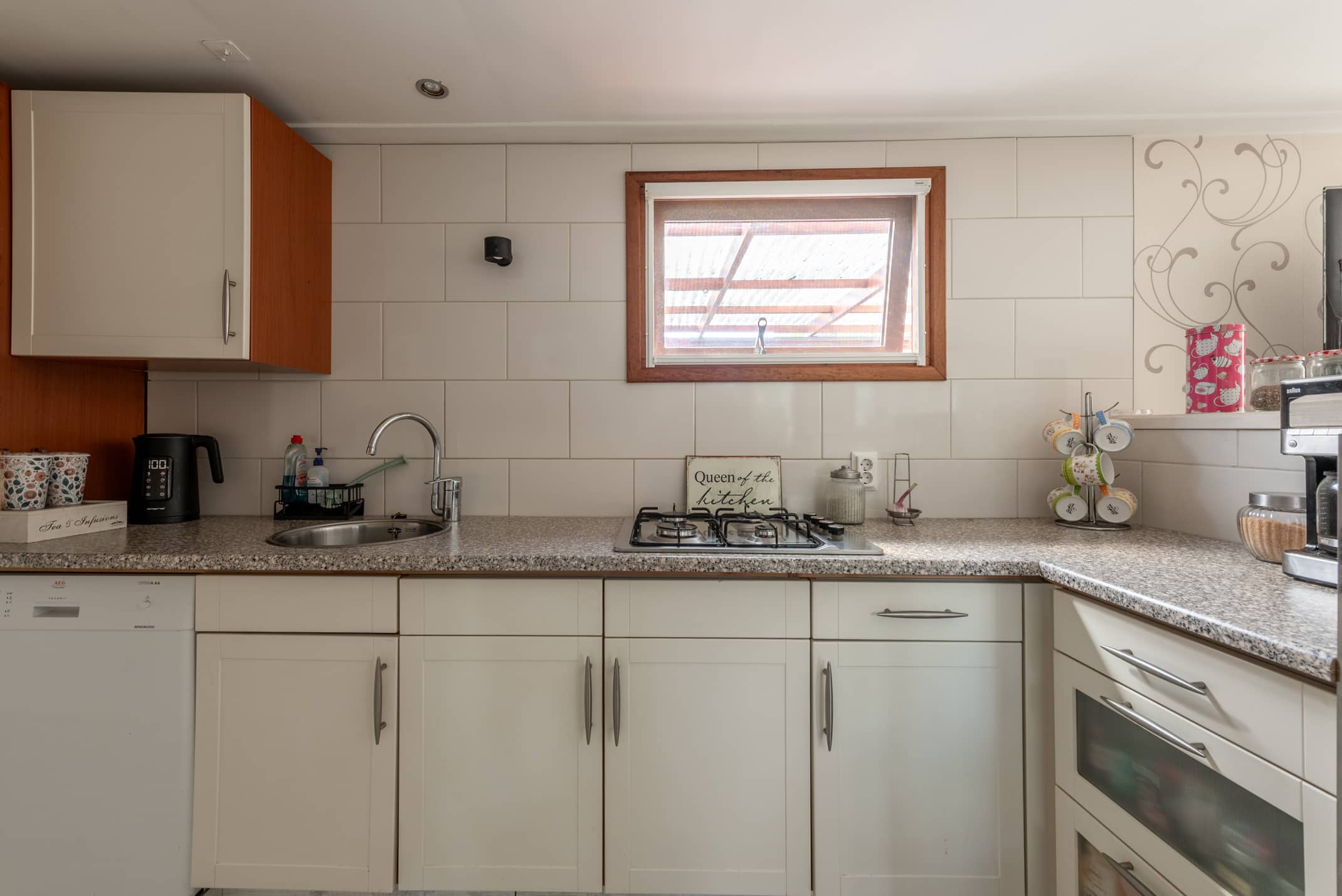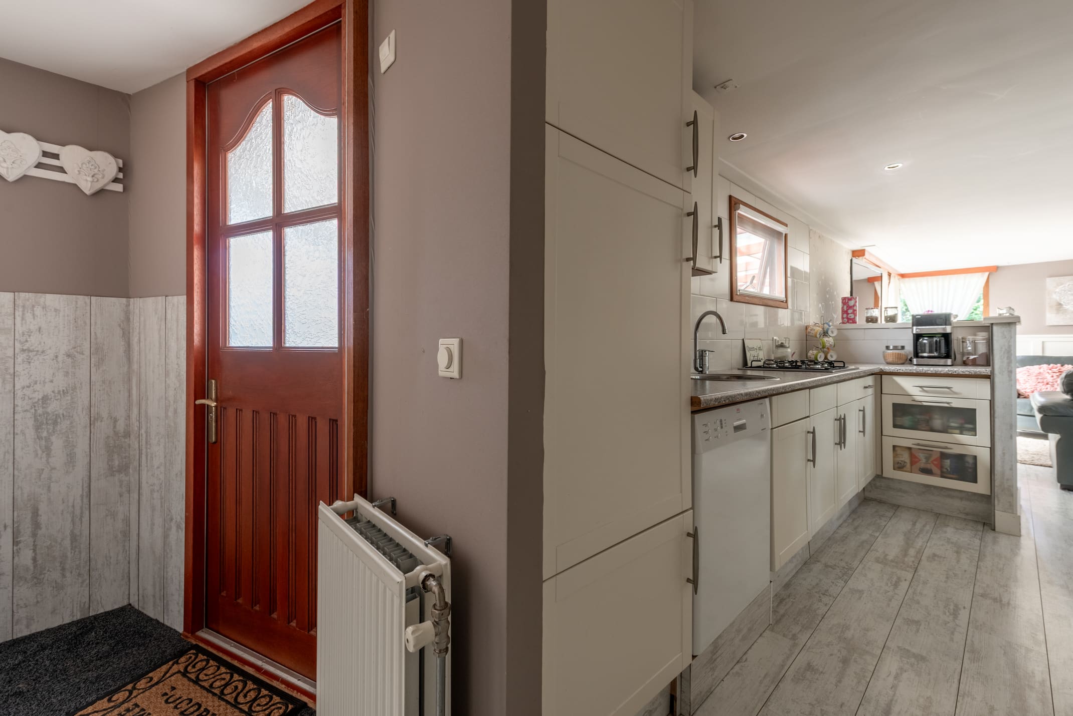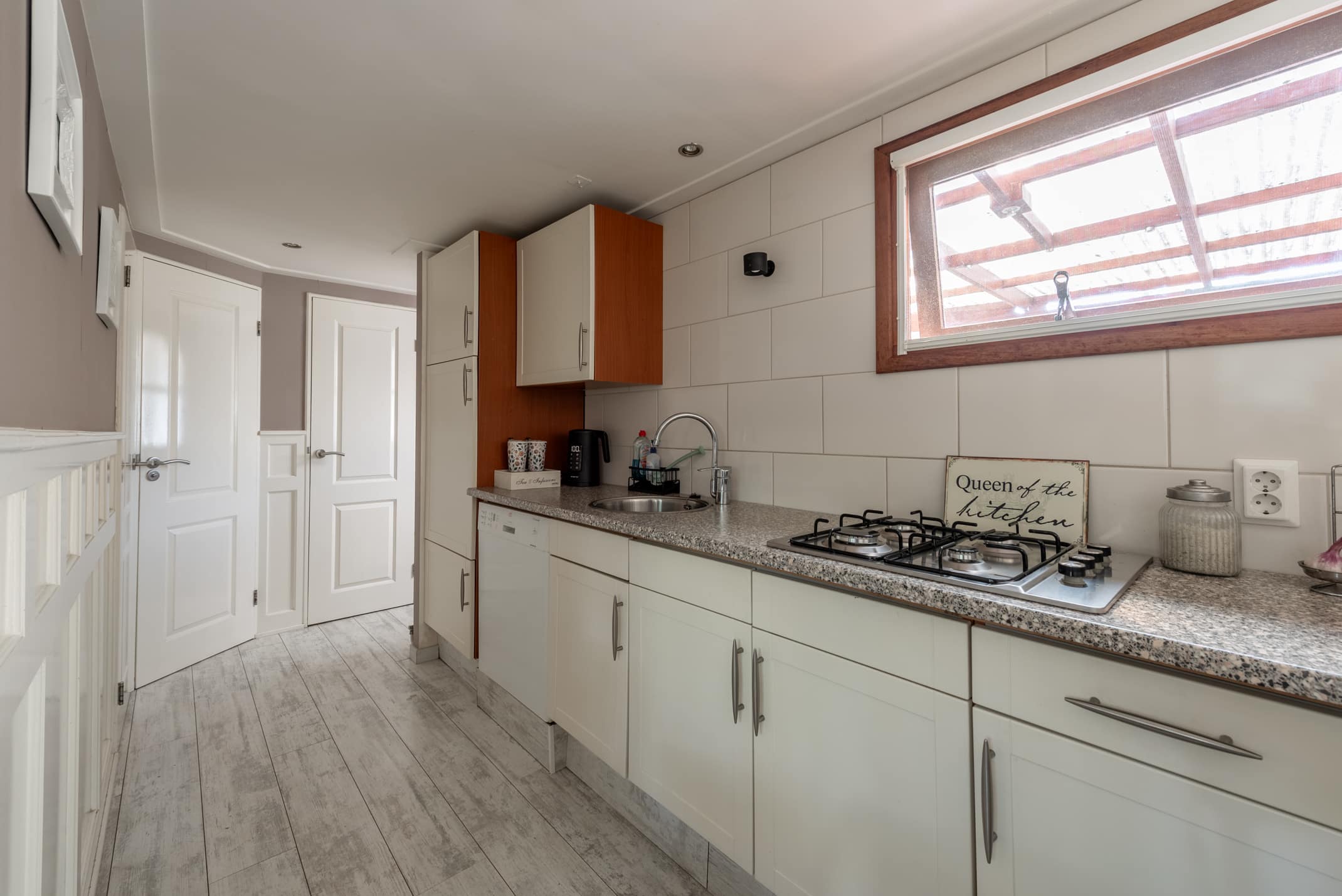 In de ruime keuken is een 4 pits gaskookplaat welke in 2025 vernieuwd, koel/vries combinatie en vaatwasser.