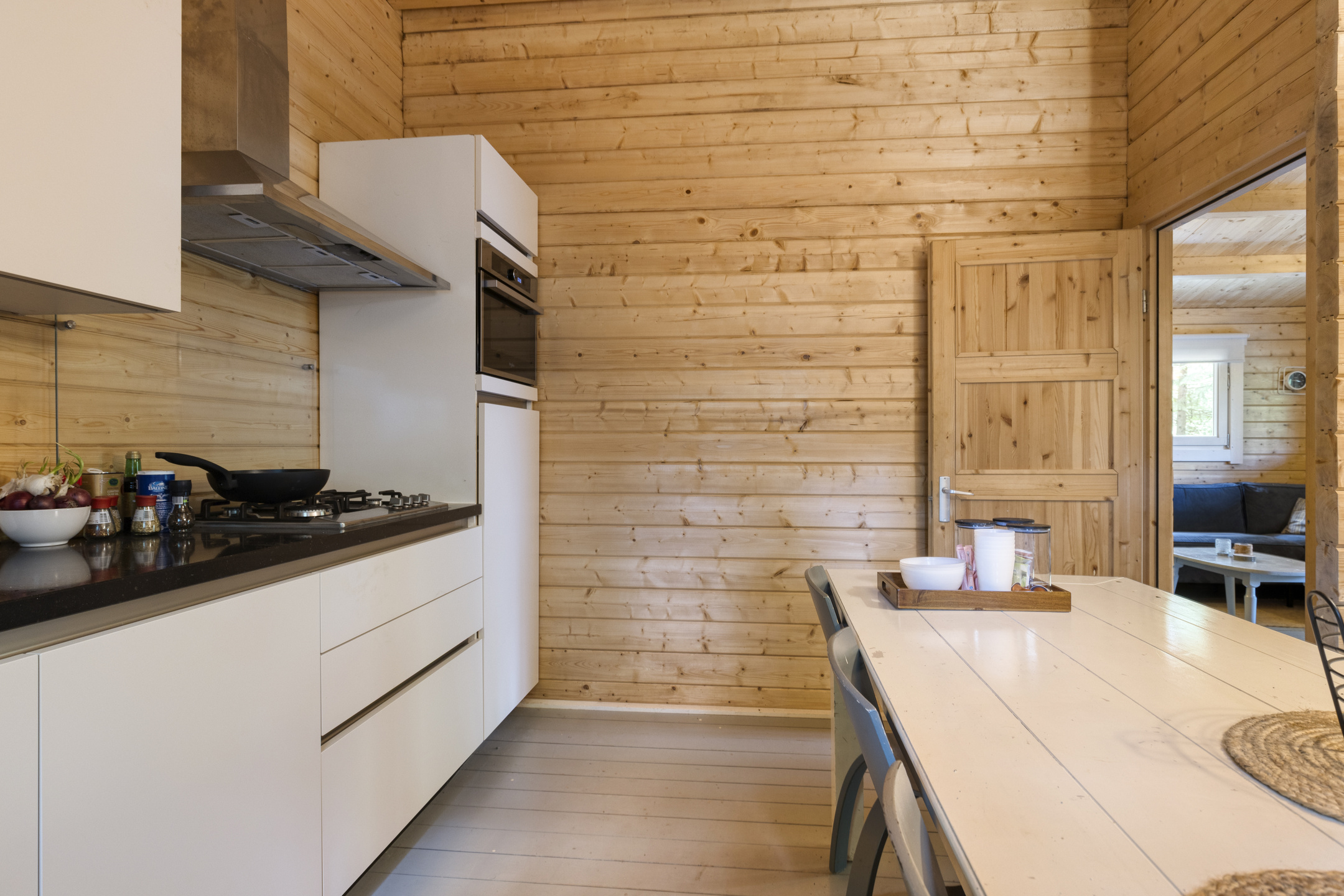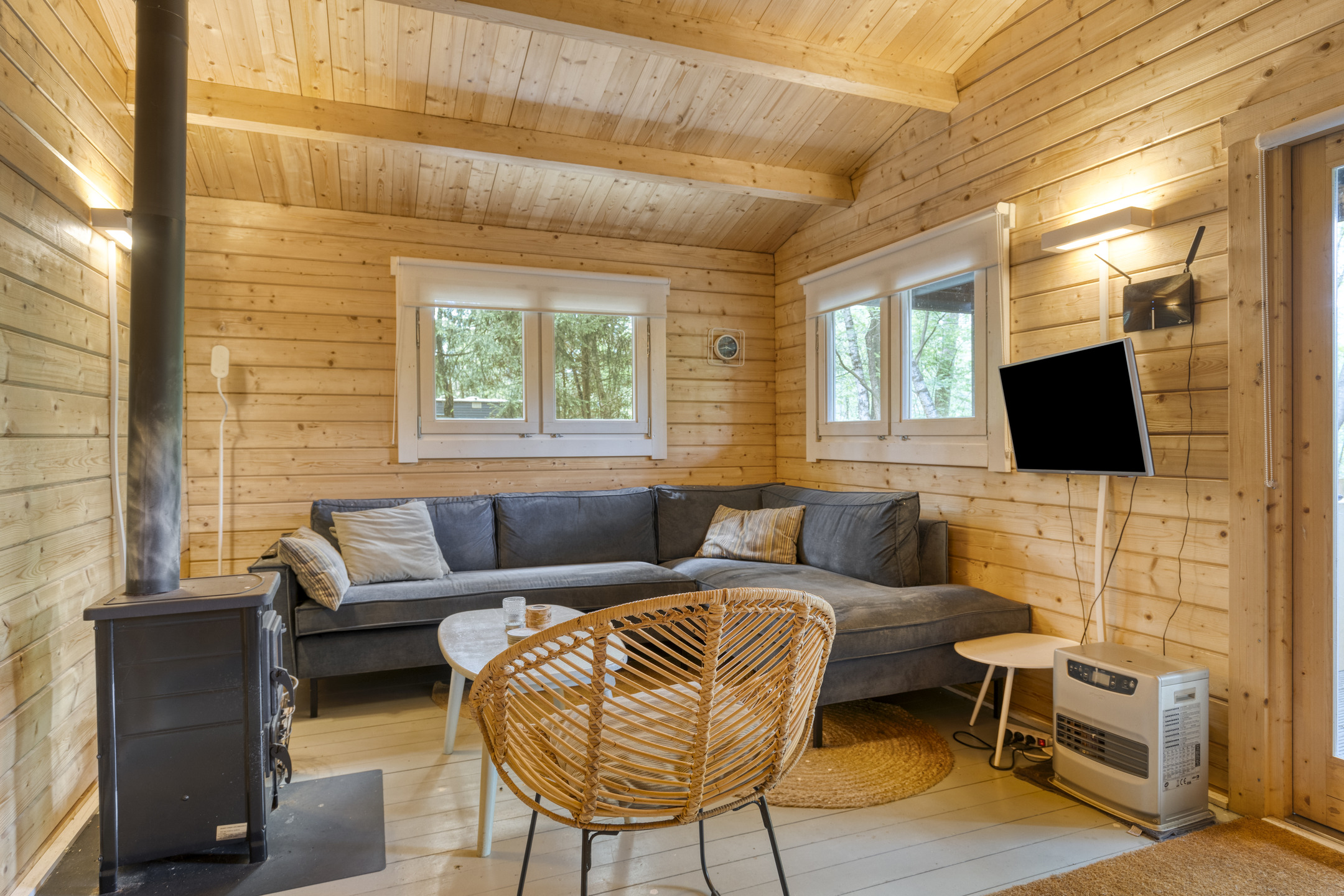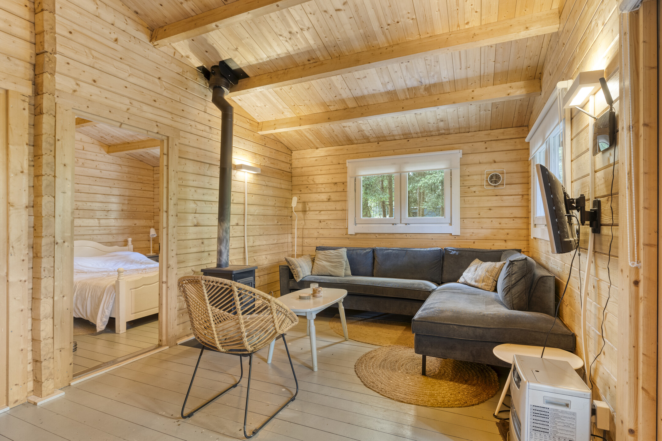 De woonkamer is het middelpunt van de woning. Deze heeft een open indeling en biedt voldoende plek voor een zithoek, waar u heerlijk kunt ontspannen. De houten wanden geven de ruimte een landelijke uitstraling, wat perfect past in de omgeving waar u zich bevindt. Verwarming vindt plaats door een Zibro Camin en een houtkachel.