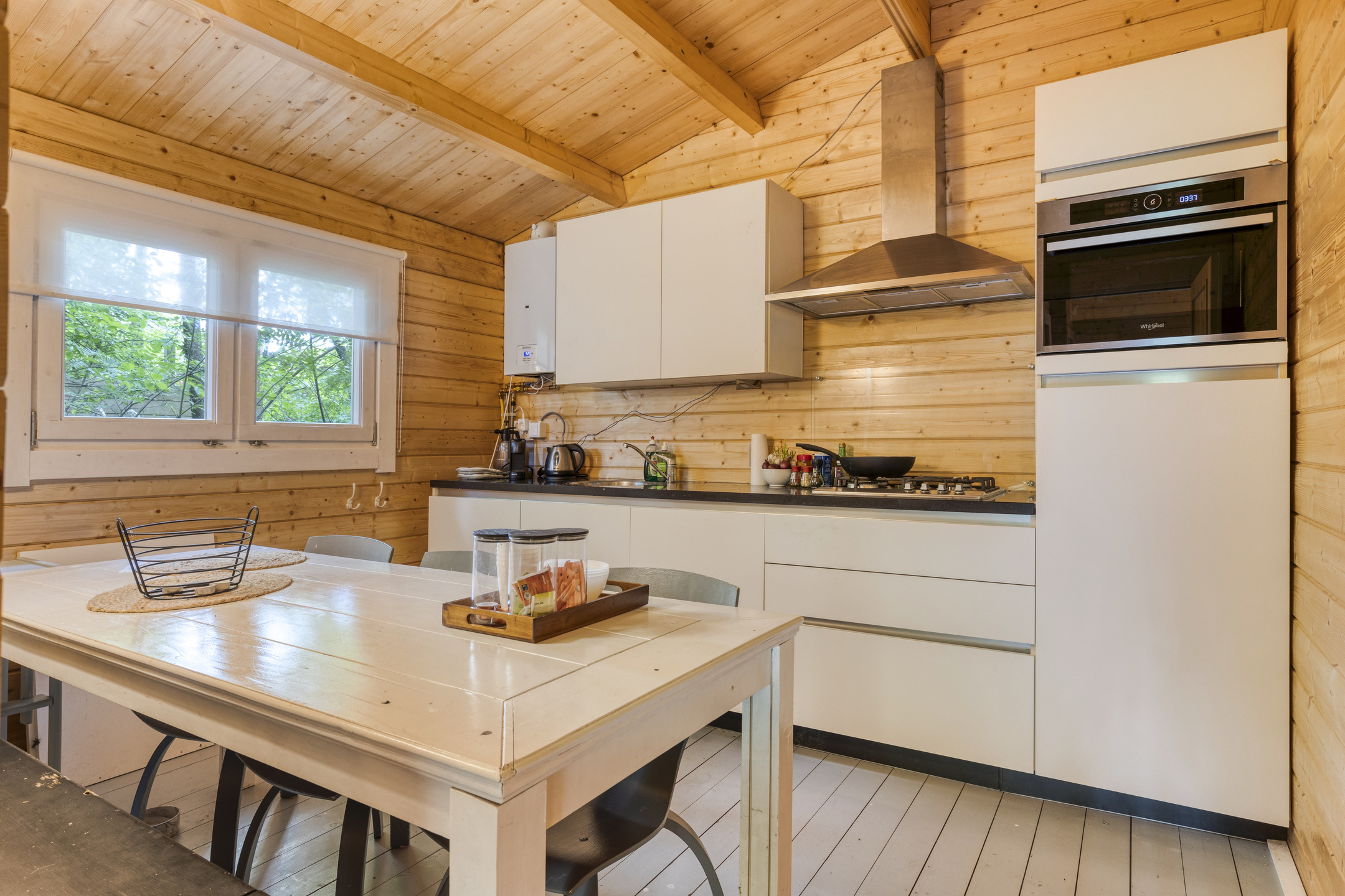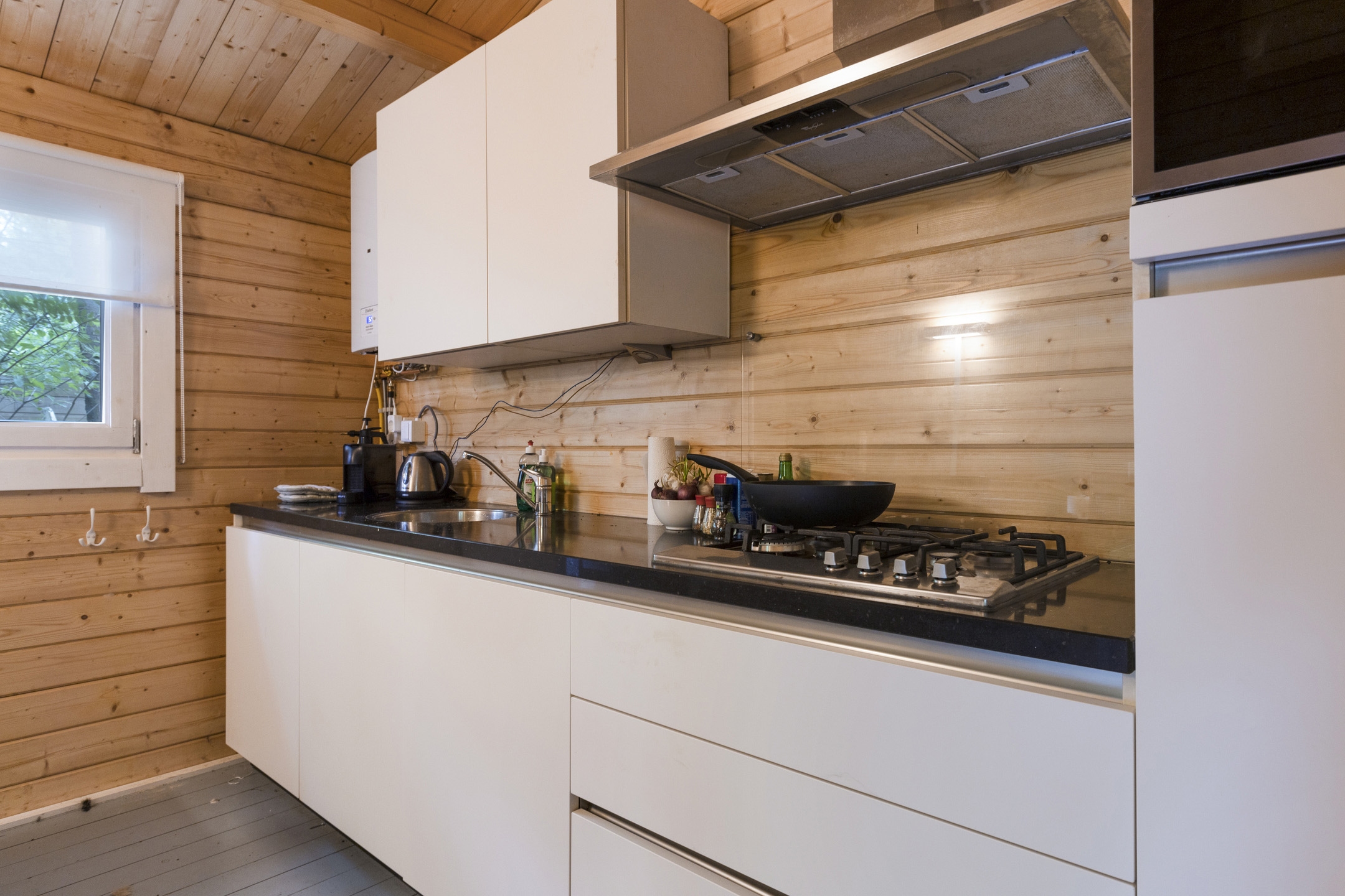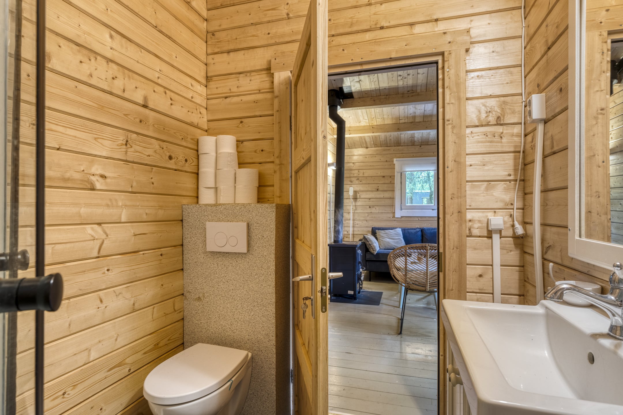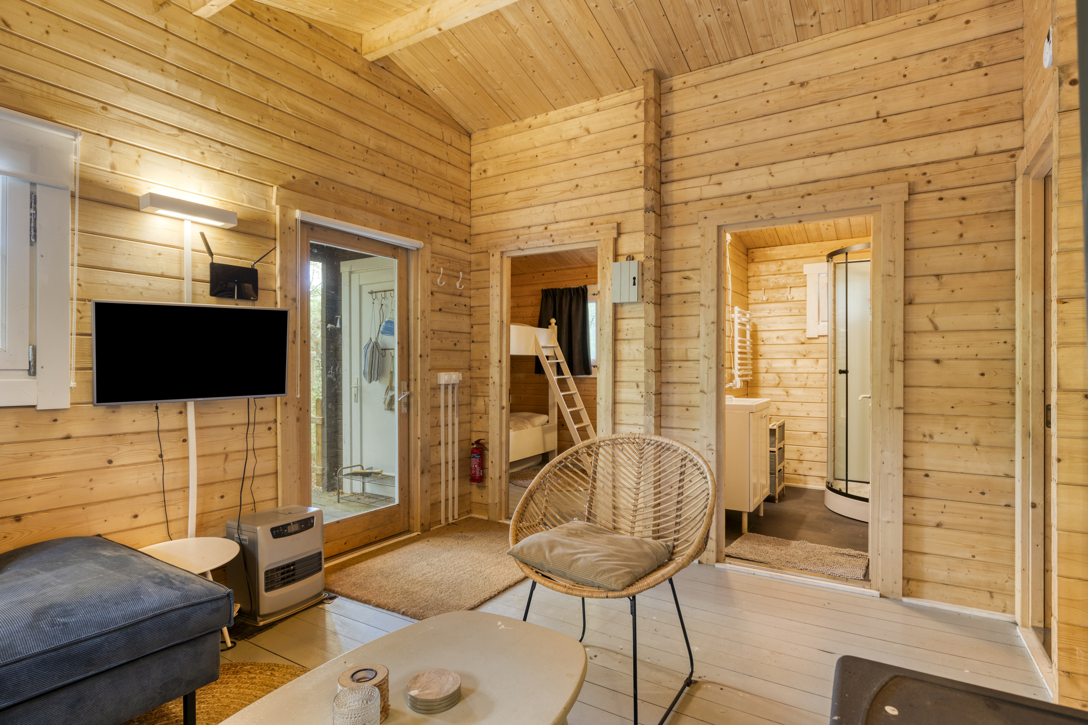 De woonkamer is het middelpunt van de woning. Deze heeft een open indeling en biedt voldoende plek voor een zithoek, waar u heerlijk kunt ontspannen. De houten wanden geven de ruimte een landelijke uitstraling, wat perfect past in de omgeving waar u zich bevindt. Verwarming vindt plaats door een Zibro Camin en een houtkachel.